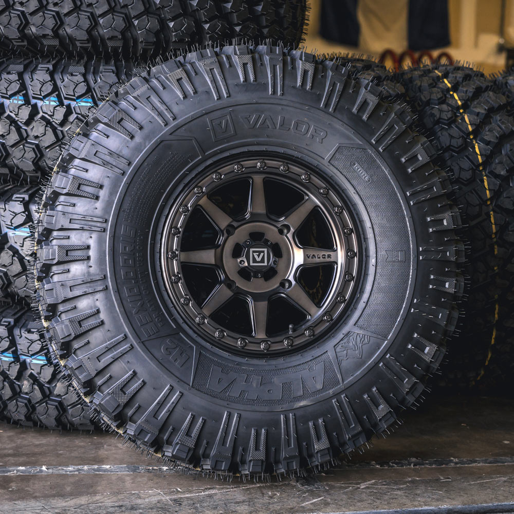 The Alpha deploys a non-directional, massive 20mm tread across nearly 9 inches of contact patch. That translates to extreme grip in virtually any terrain. Valor Offroad’s engineering team set out to develop a UTV specific tire that can handle any terrain, while being significantly quieter at high speeds. This was accomplished using tire pitch sequencing, which arranges the tread blocks in varying sizes. These minor modifications make an enormous difference for anyone planning to travel for long distances on hard-pack. To learn more about the Alpha click button below: