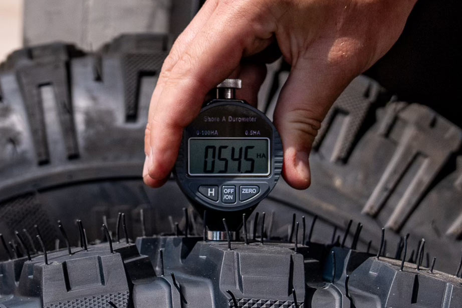 Understanding a tire compound's physical and chemical properties is crucial as it determines the tire's performance, including its grip, wear, rolling resistance, and traction. The choice of compound, whether hard or soft, is a key factor in the intended use of the tire. Harder Compounds while more durable (longer longevity) and offering lower rolling resistance (which can improve fuel economy), come with a trade-off. They offer less grip than softer compounds. Soft Compounds on the other hand, offer more grip, making them ideal for crawling, climbing or tackling difficult off camber terrain. The trade off for incredible grip is that they wear faster and have higher rolling resistance than harder compounds.