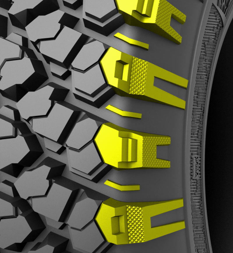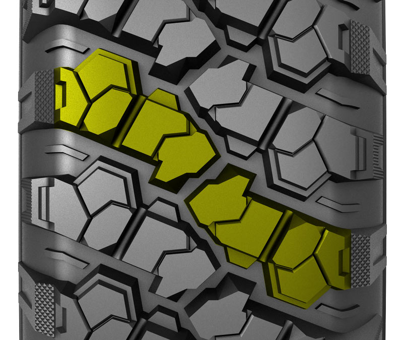 Maintain forward traction with the Alpha’s aggressive shoulder side lugs which add an extra biting edge when you need it most. Stone ejectors are strategically placed between shoulder lugs for optimal armor.