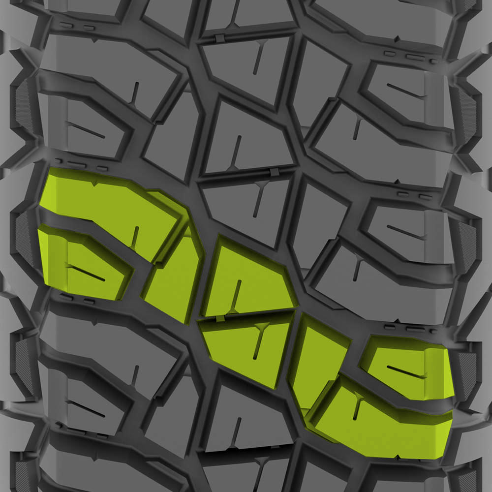 The Tango UTV tire is a testament to superior design. Its reinforced tread blocks and deep sidewall lugs ensure a punchy response on any terrain. The tire's balance between bite and weight is the result of the extra time we invested in our Research and Development phase. The shoulder lugs, meticulously engineered to minimize unnecessary weight, provide the protection and grip you need when you need them.