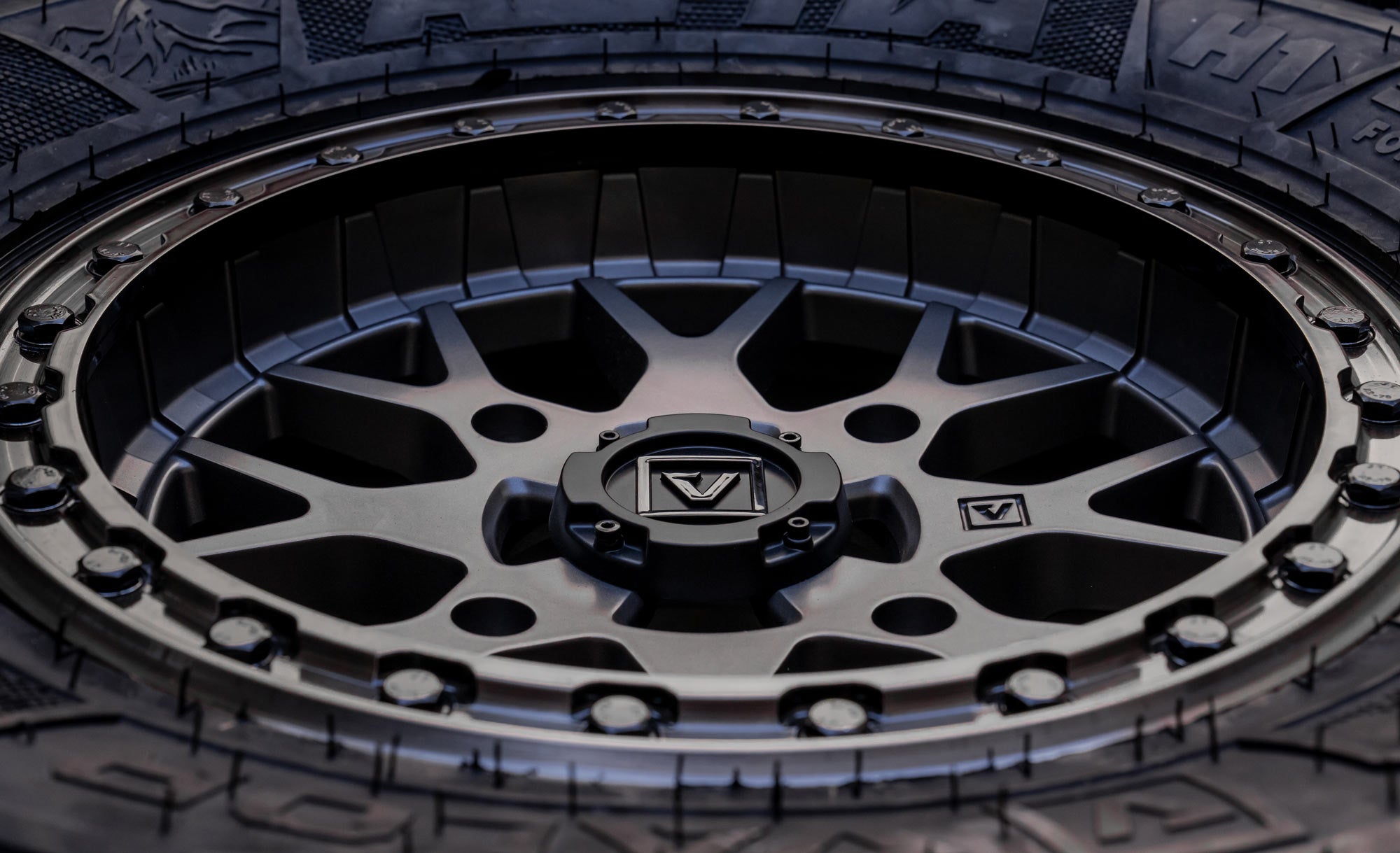 The V07 beadlock wheel is available in satin black and satin graphite finishes. The center cap on both finishes is satin black. Please note that the center cap logo varies with wheel finish selection. The V07 billet beadlock ring comes out of the box in a gloss black paint finish. All Installation hardware is gloss black.