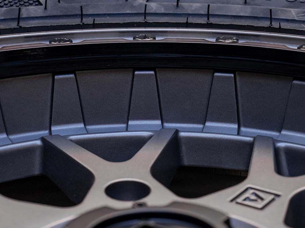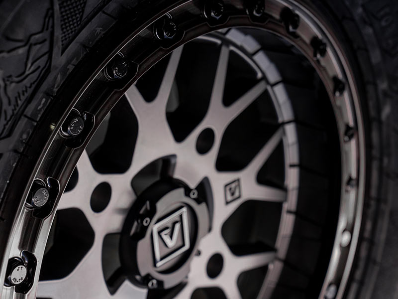 The V07 beadlock wheel is available in satin black and satin graphite finishes. The center cap on both finishes is satin black. Please note that the center cap logo varies with wheel finish selection. The V07 billet beadlock ring comes out of the box in a gloss black paint finish. All Installation hardware is gloss black.