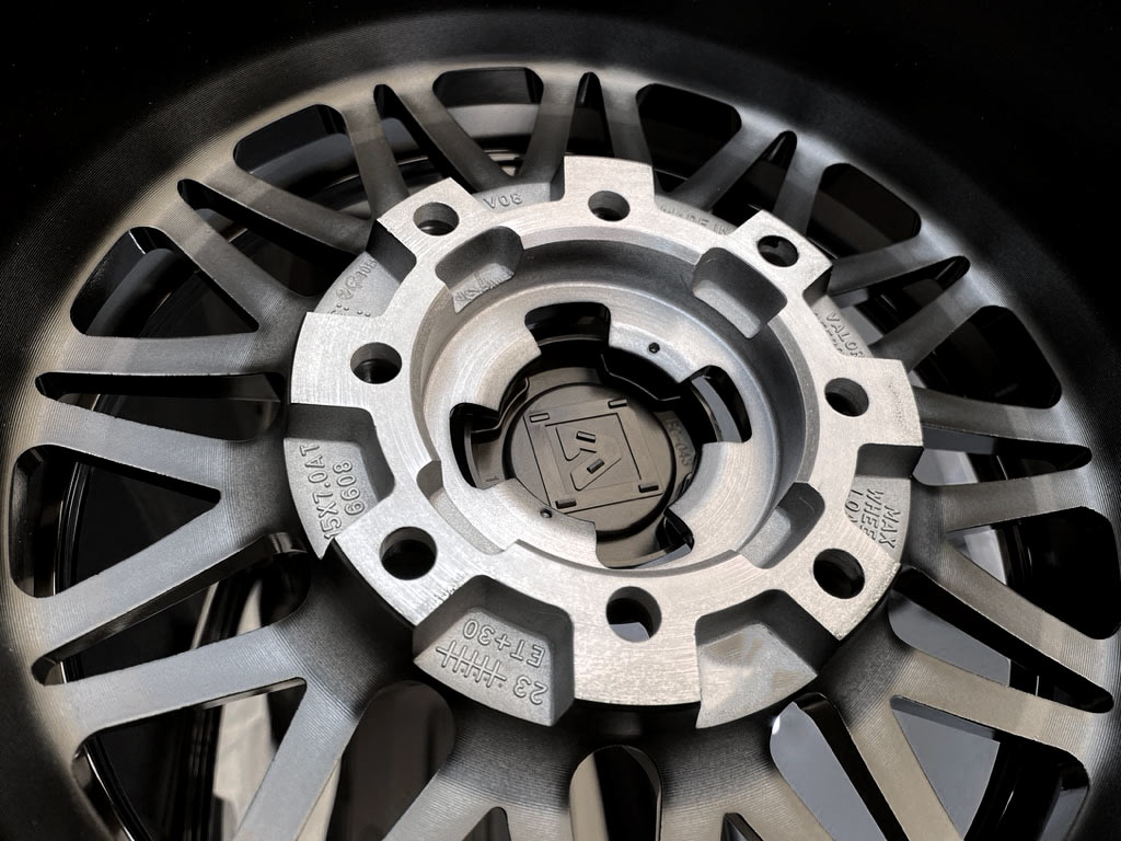 Our dark tint finish starts with a thick coat of satin black paint before we machine off the face of the wheel, exposing the raw aluminum. We then coat each wheel in a super thick coat of durable tinted clear coat.