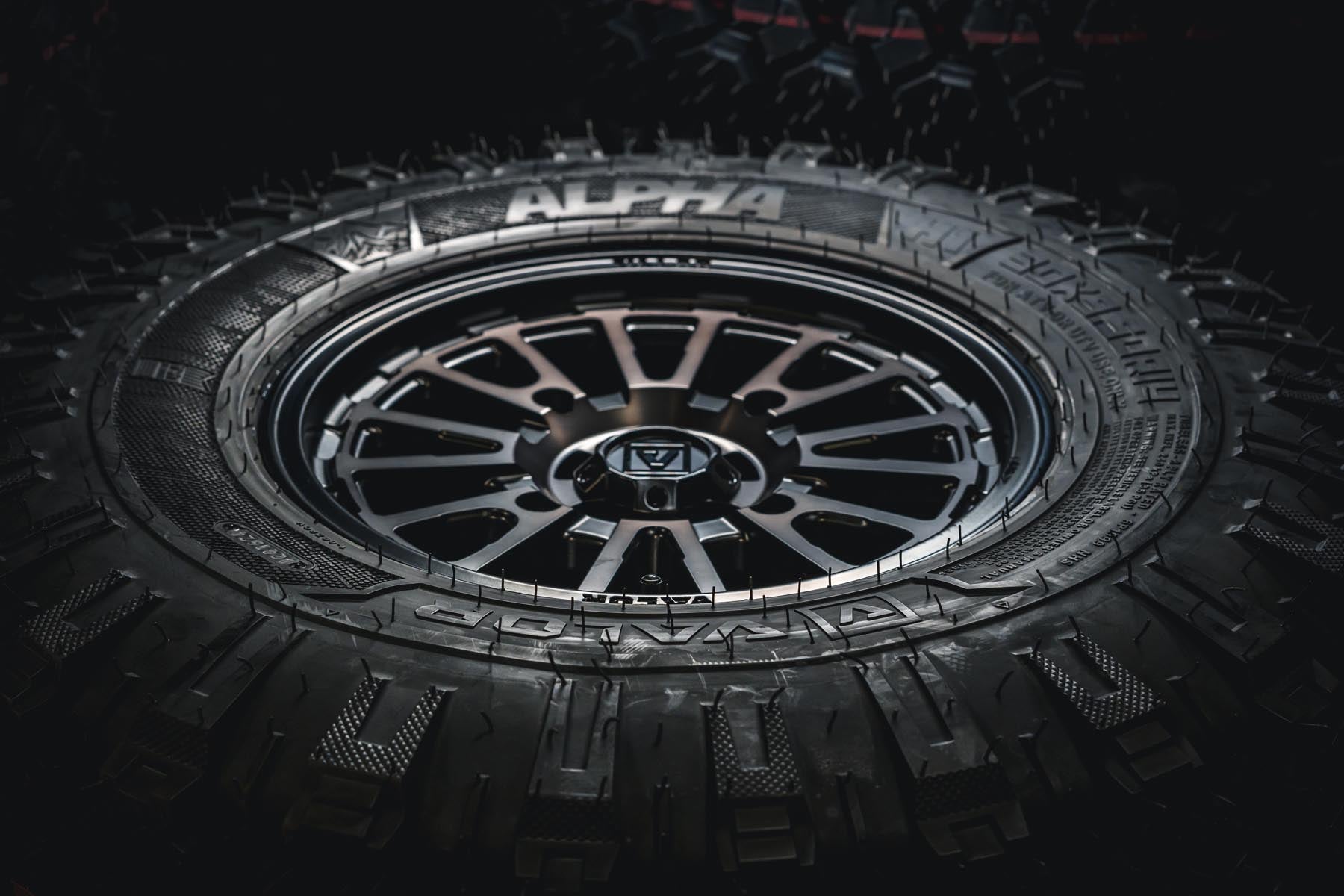 The Dark Tint paint finish on the Valor Offroad V14 UTV wheel is one. ofthose finishes that looks amazing in the sun but even better in the shade. Each wheel has the face machined expose the grain of the aluminum alloy. The wheel is then sent to paint booth to get a super thick coat of tinted clear.